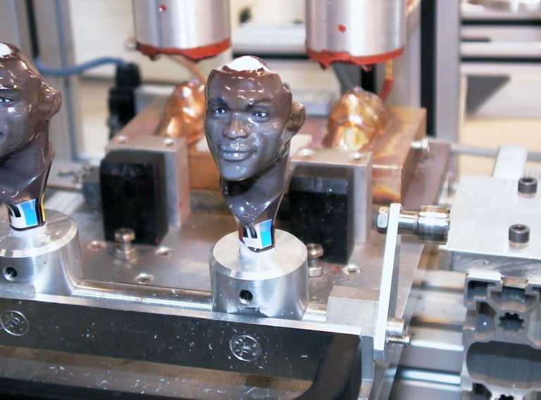 Aujourd´hui, nous avons à notre disposition 6 têtes de manchonnage (sleevage), dont 2 conçues et fabriquées en interne par notre bureau d’études, pour des applications spécifiques ou sur mesure. 8 tapis de convoyage, spécialement adaptés au convoyage de pompes, capsules ou tout autre produit, avec chargement automatique ou manuel. De nombreux fours et systèmes de rétraction, utilisant différentes technologies : air chaud, céramique, infrarouge (lumière noire) ou vapeur, afin de garantir une rétraction optimale selon le matériau et la géométrie du produit. 2 machines de préformage, permettant la réalisation des formes les plus complexes et des manchons techniques à haute valeur ajoutée.